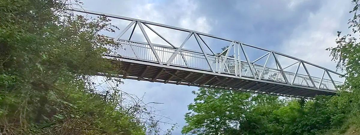 Implantée dans un environnement à forte valeur paysagère, cette passerelle a été pensée pour répondre à un double enjeu : sécuriser les flux de mobilités douces tout en s’intégrant harmonieusement dans son cadre naturel et urbain. Comme pour chacun de ses projets, Poralu Bridge a assuré l’ensemble de la chaîne de valeur : ingénierie, dimensionnement, fabrication et installation.